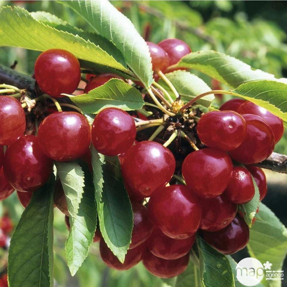 Variété de bigarreau très vigoureuse, et fertile. Greffé sur merisier et non taillé, l’arbre peut mesurer jusqu’à 16 mètres de hauteur, avec une croissance pouvant atteindre un mètre par an ! C’est une variété très ancienne déjà connue en France avant 1540. Début avril, une floraison magnifique et abondante a lieu : de petites fleurs blanches embaumant tout le jardin. On peut ainsi le préconiser dans toutes les régions de la France sans problème. Fin juin, de gros fruits en forme de coeur apparaissent, de couleur jaune vif passant au rouge clair, et à chair jaune croquante, ferme, sucrée, acidulée. Le jus de cette variété ne tache pas.